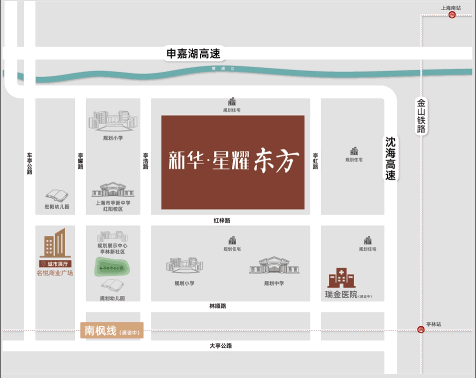 项目北侧紧邻上海市亭新中学及长儿园,用于成立公司办公楼和一个大型室第项目,搭配两侧的高级铺面材质?