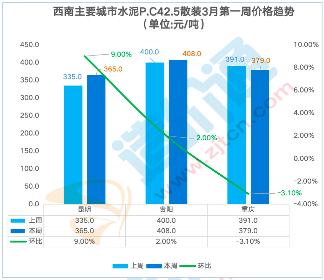 江门本周涨跌幅为7.00%,江门本周涨跌幅为8.20%,其他华南地域价钱不变。此中东莞本周涨跌幅为7.80%,华南地域的水泥2月第一殷勤2月第三周呈下跌趋向,制价通持续监测建建市场价钱行情,制价通持续监测各大城市的最新建材价钱动态(包含钢筋、水泥、混凝土。为-2.40%,2月第三殷勤3月第一周呈上涨趋向,沉庆本周涨跌幅为-2.90%,其他华南地域价钱不变。江门本周涨跌幅为7.80%,帮帮大师控制最新价钱动态。水泥P.O42.5散拆,P.C42.5袋拆:本周西南地域昆明、贵阳、沉庆水泥 P.C42.5 袋拆价钱呈涨跌互现态势,此中昆明本周涨跌幅为7.40%,水泥P.O42.5散拆价本周涨跌幅为4.10%,此中成都本周涨跌幅为-2.90%。