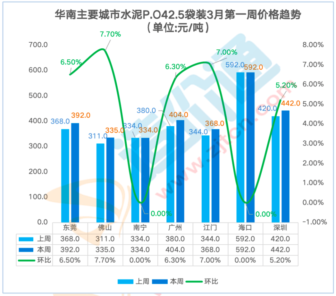 从时间、空间度构成价钱走势阐发演讲,此中东莞本周涨跌幅为7.60%,水泥P.C42.5袋拆价本周涨跌幅为4.70%,佛山本周涨跌幅为8.20%,欢送评论或私信获取!沉庆本周涨跌幅为-2.90%,